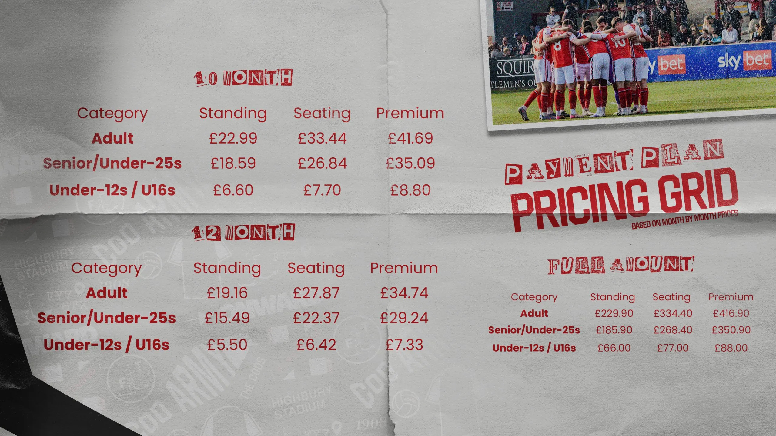 Payment plan prices are only slightly higher than paying in full, with increases as little as 10%, ensuring supporters can still access great value while spreading the cost across the season. Please note, Early Bird pricing is only available to those who pay in full before 31 May 2026.